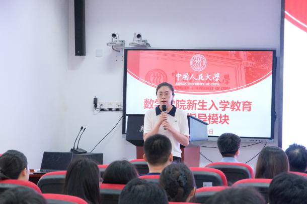柯媛元书记代表学院向新生致以热烈欢迎。她立足中国人民大学的光荣革命传统与红色基因,系统介绍了学院的发展历程、学科优势与办学成就,并对新生提出殷切期望。她鼓励同学们积极为学院发展建言献策,一同建设更加温暖的数学学院大家庭,寄语新生从今天起,将开启在人大数学学院的学习之旅,希望同学们有理想、有抱负、有家国情怀,勤学善思、追求卓越,大胆迈向未来的人生旅途。