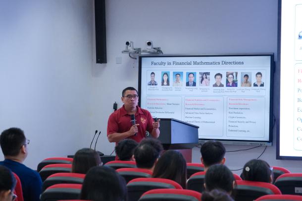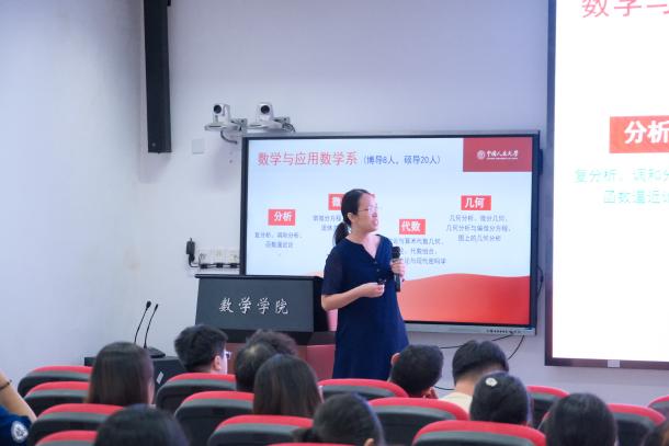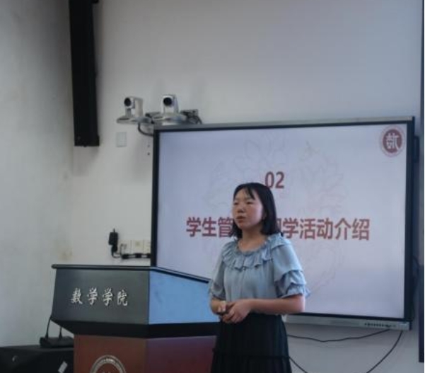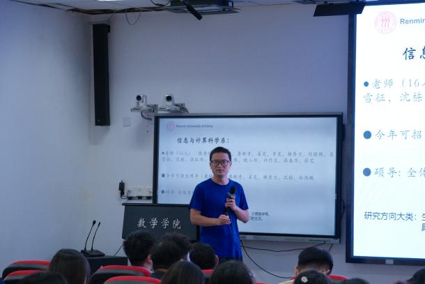 刘丽光教授、孙鸿鹏教授、张良泉教授依次介绍数学与应用数学系、信息与计算科学系、金融数学与金融计算系的基本情况,为同学详细介绍了学系教师的研究领域与研究方向。研究生教务秘书蔡晓雨老师针对研究生培养方案与选课事宜展开详细说明,为新生厘清学业规划的脉络。